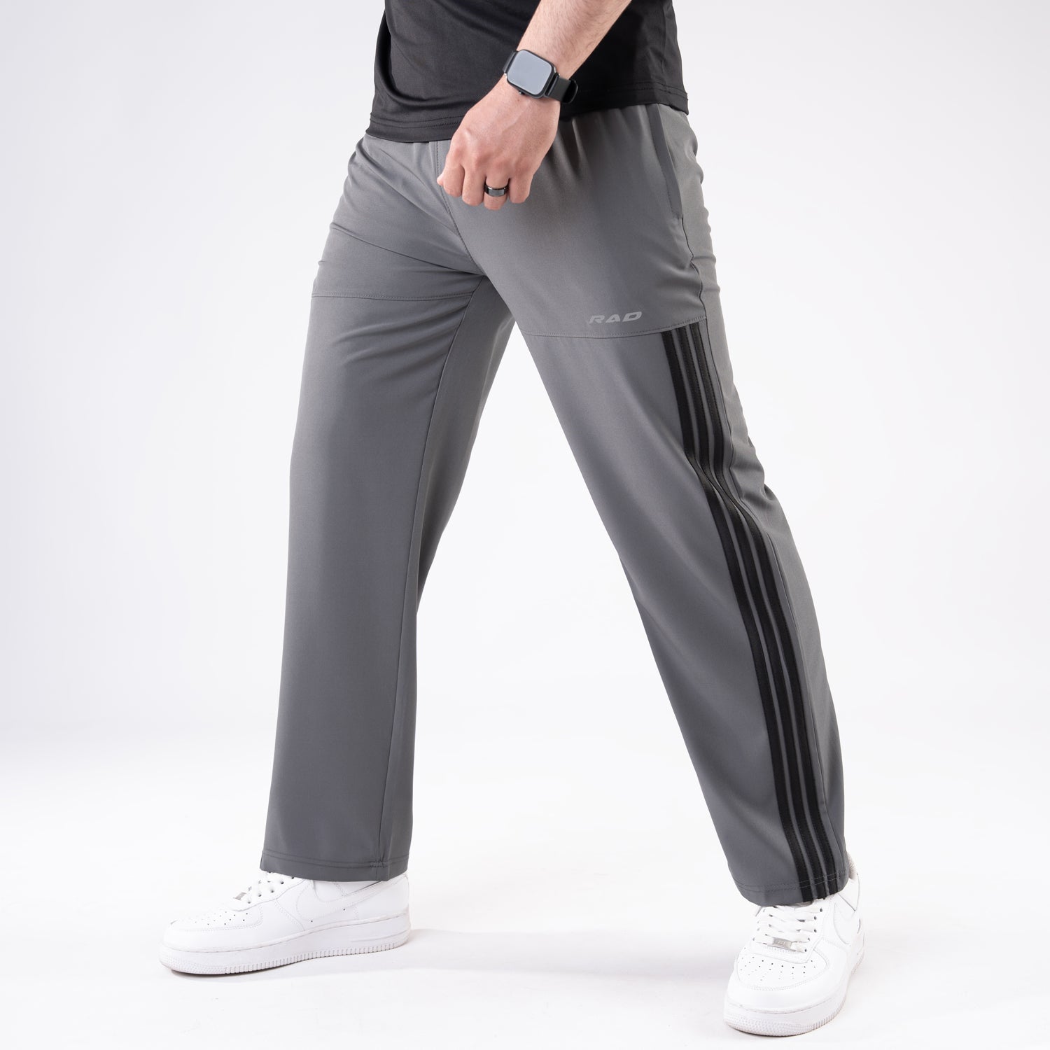 Gray Trousers with Front Panel Three Black Stripes