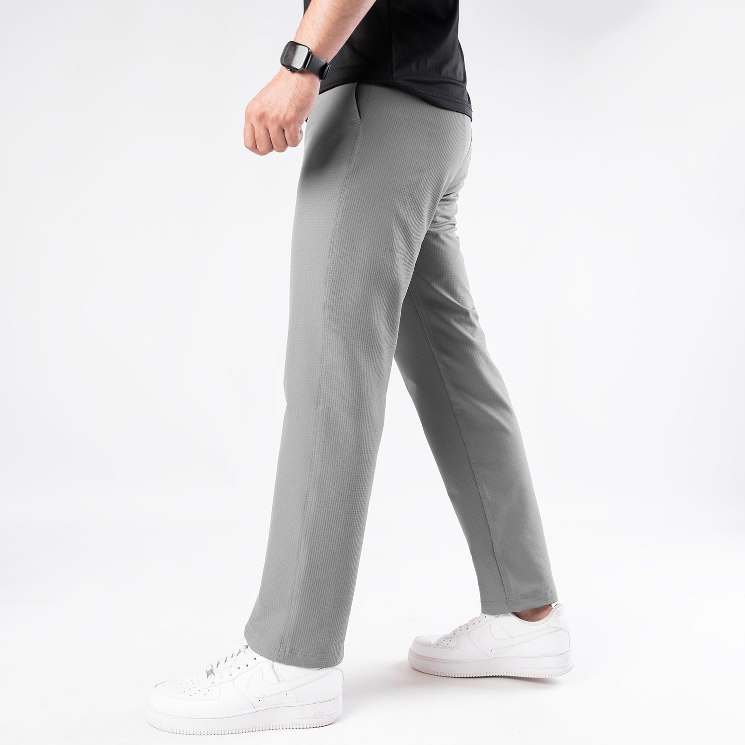 Gray Woven Lycra Self Textured Straight Pants