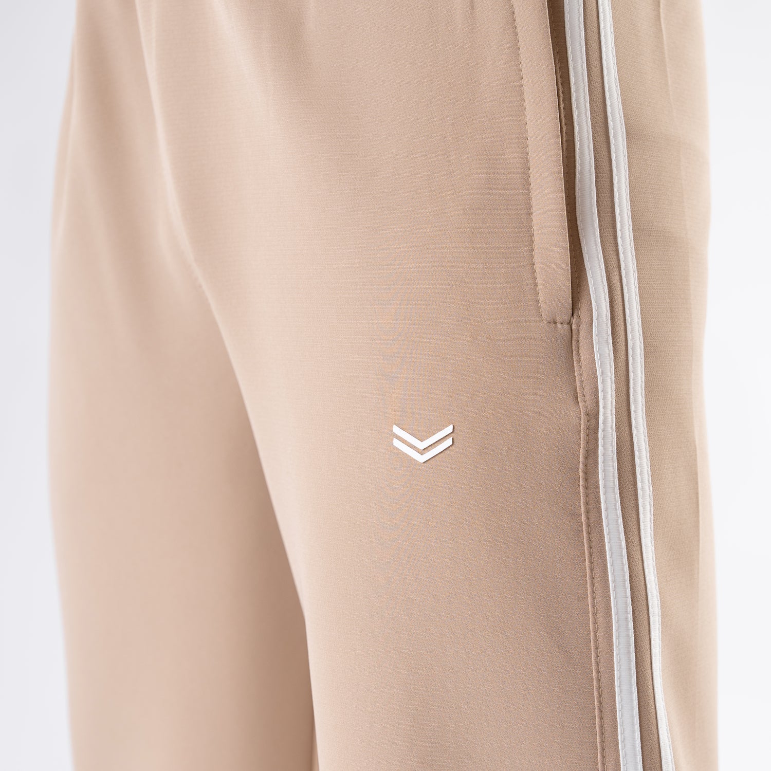 Beige Lycra Terry Two Stripe Trousers